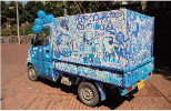 被災地で活躍した白いトラックと車の2台を、みんなで楽しくブルーにペイントしちゃおう!出展アーティストも参加!みんなでペイントした世界に一台のMAZEKOZEブルーアートカ―は、4月2日、街中を走ります。